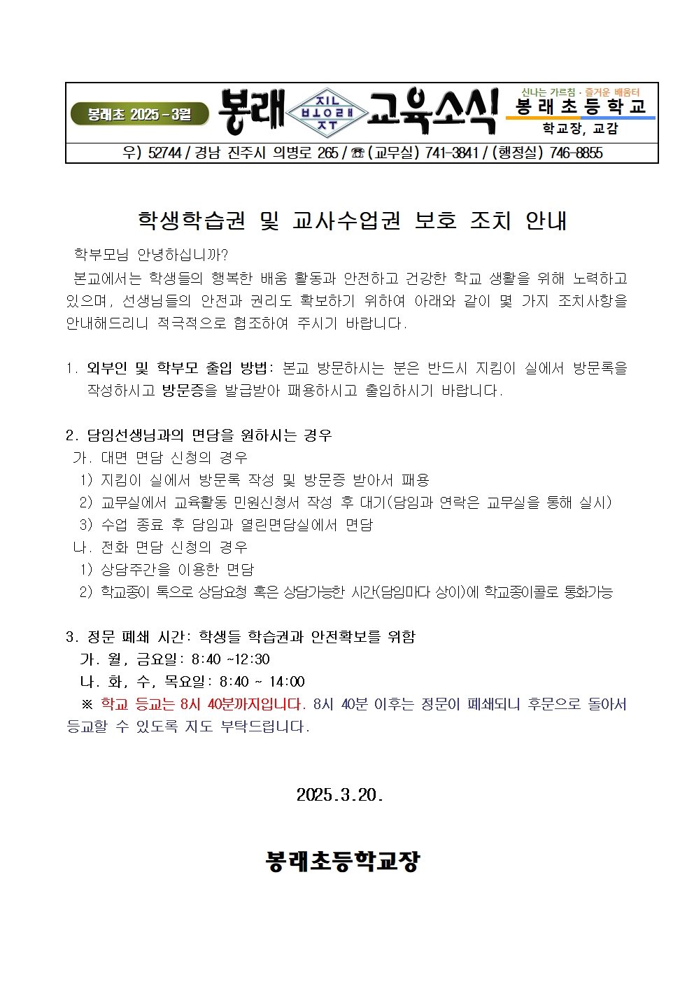 교사수업권 및 학생학습권 보호 조치 안내 .hwpx